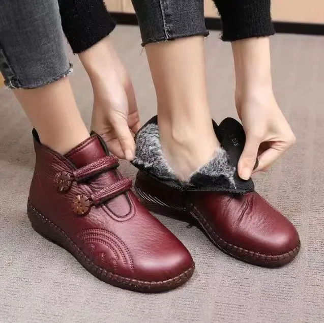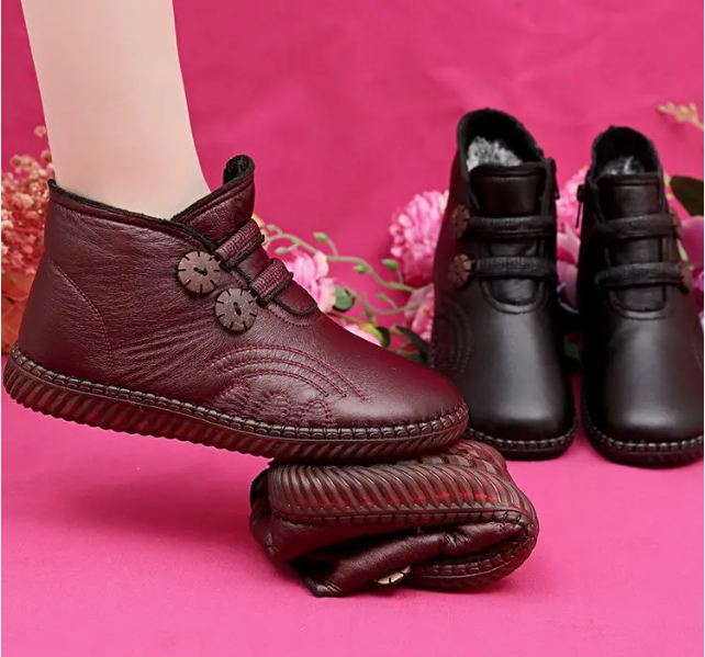 Dopřejte si teplo a eleganci s těmito ručně vyráběnými dámskými podzimními a zimními botami – kde se kvalita snoubí s pohodlím na každém kroku. Jsou vyrobeny z prvotřídní pravé kůže a měkké bavlny v kombinaci s bujnými sametovými detaily a spojují luxus s pohodlím, aby ochránily vaše nohy před chladnými dny.