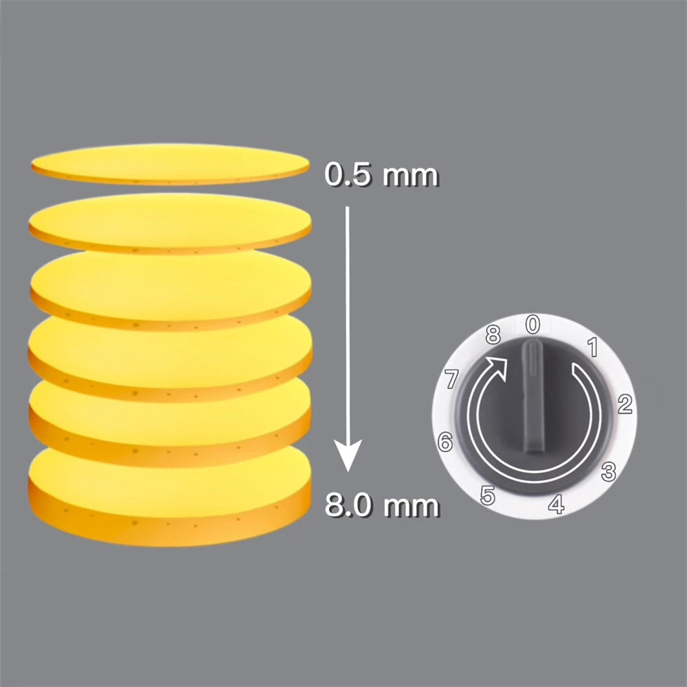 [Všestrannost] Flexibilní design čepele umožňuje bez námahy krájet ovoce a zeleninu do různých tvarů a velikostí, například vytvářet vlnité, rovnoměrné plátky, proužky nebo bramborovou kaši.