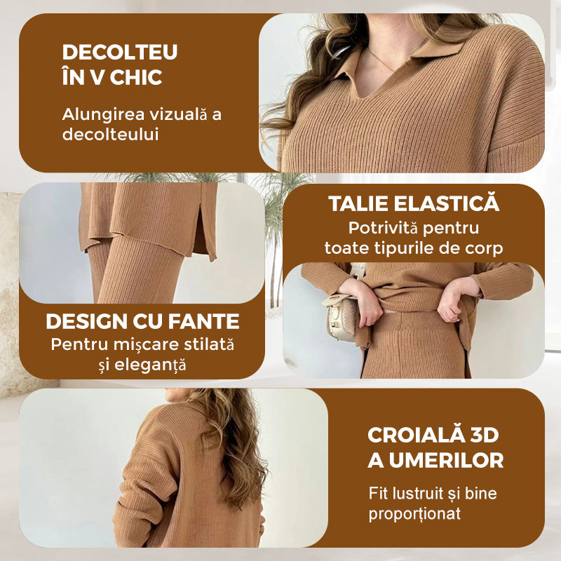 💖Dvoudílný pletený oblek s výstřihem do V