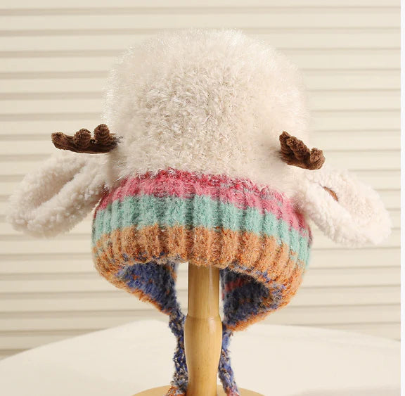 OKOUZLUJÍCÍ JEHŇÁČÍ VZOR S MALÝMI ROŽKY: Tato rozkošná čepice se vyznačuje neodolatelně roztomilým jehňátkem a malými rohy, které jí dodávají na kouzlu. Je to perfektní doplněk, který vykouzlí úsměv na tváři každému.