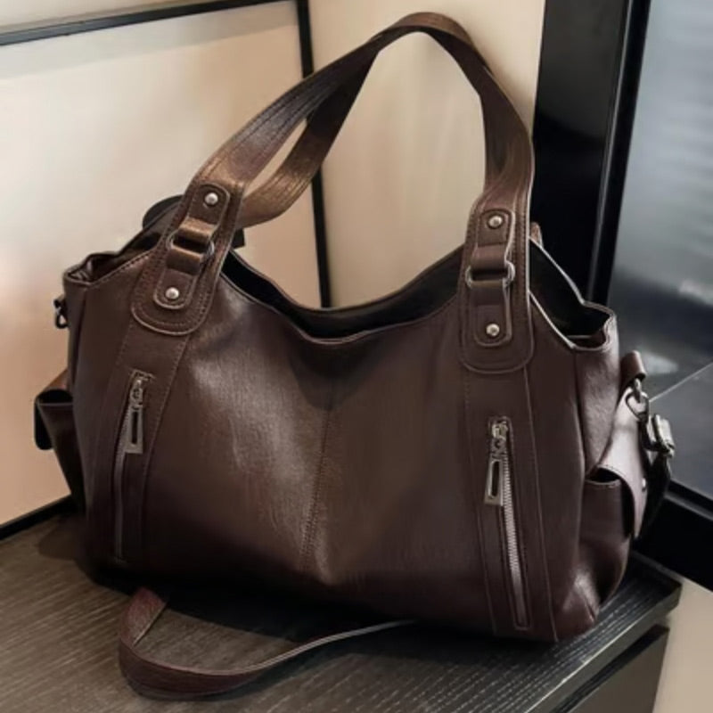 PUNKOVÝ DESIGN – Taška zdobená punkem inspirovaným designem s nýty je odvážným módním doplňkem pro každodenní použití.